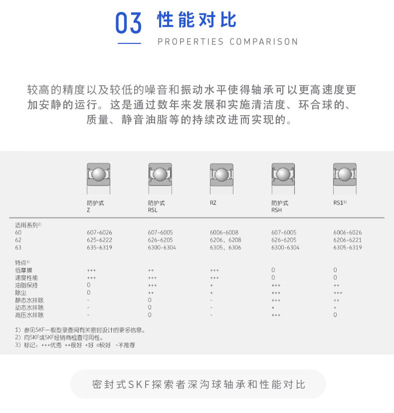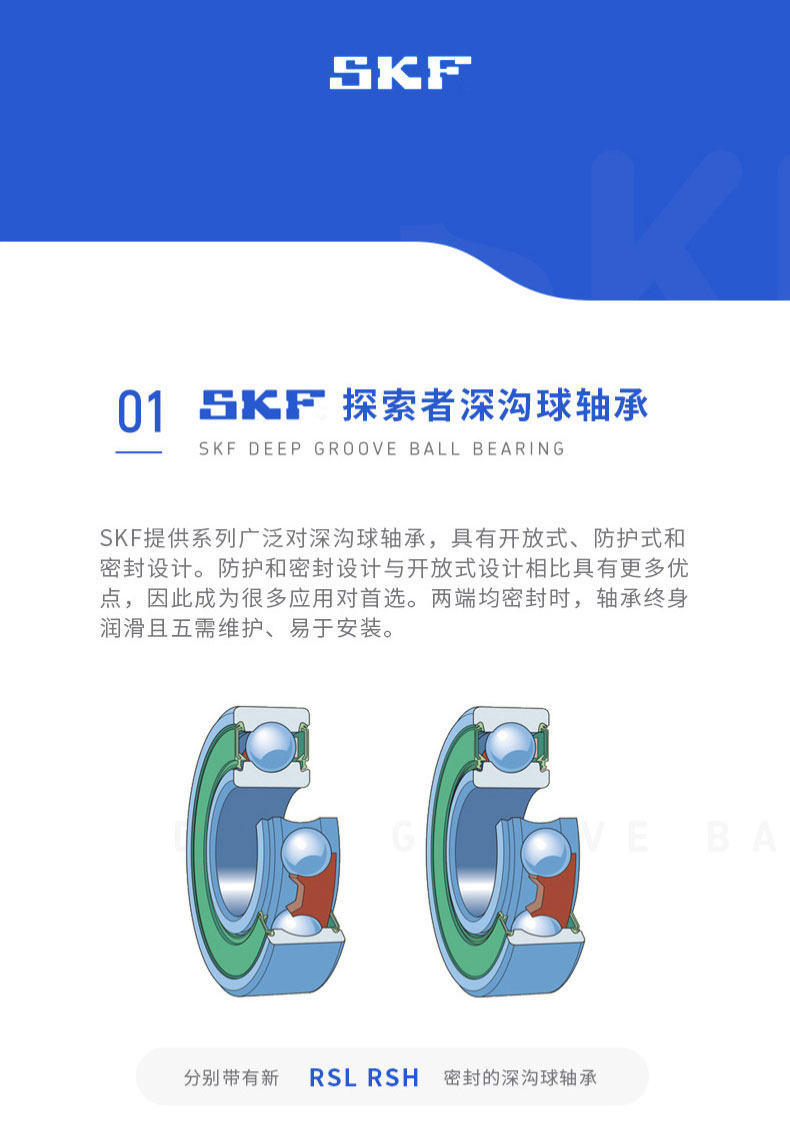 SKF深溝球軸承是一種儀器器件,有開(kāi)式、雙面帶密封圈,帶密封的軸承在外圈上開(kāi)有可裝密封圈或防塵蓋的溝槽,適用于高轉(zhuǎn)速甚至極高轉(zhuǎn)速的運(yùn)行。